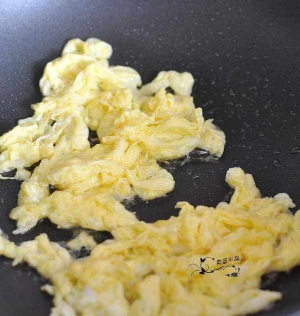 2.锅里倒入油,倒入打散的蛋液搅成块状,盛出备用。