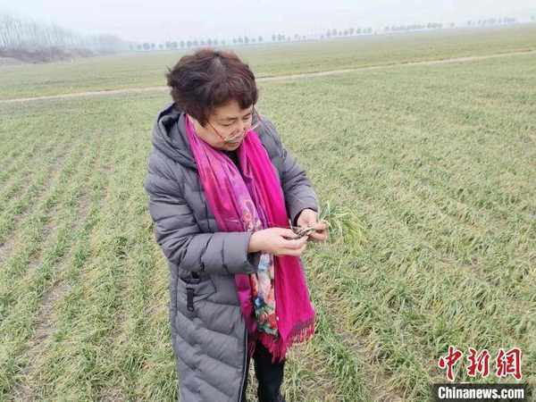 吴兰云麦田里查看麦苗长势情况 吴兰云供图
