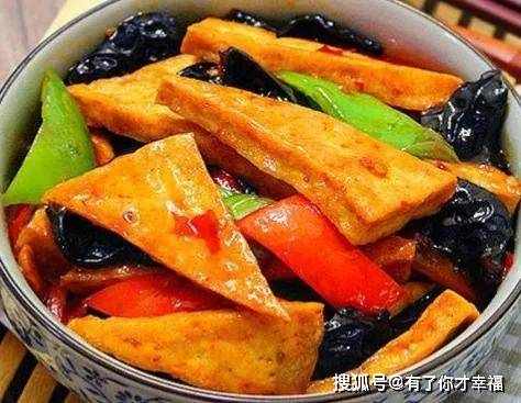 (1)千页豆腐冲洗一下,切成块,黑木耳洗净泡发,青红椒洗净去蒂切丝,小葱剥皮切成葱花,蒜瓣剥皮切成末,生姜去皮切末。