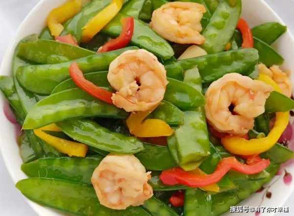 (1)荷兰豆去筋洗净,基围虾去头去壳,用牙签,挑出虾线洗干净,红椒去蒂去籽,冲洗干净切成丝,生姜去皮切成片备用。