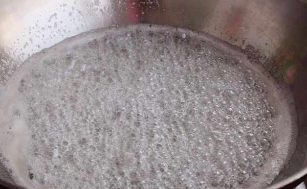 7、我们继续搅拌煮糖浆,直到锅里的糖浆有大气泡就可以出锅了。