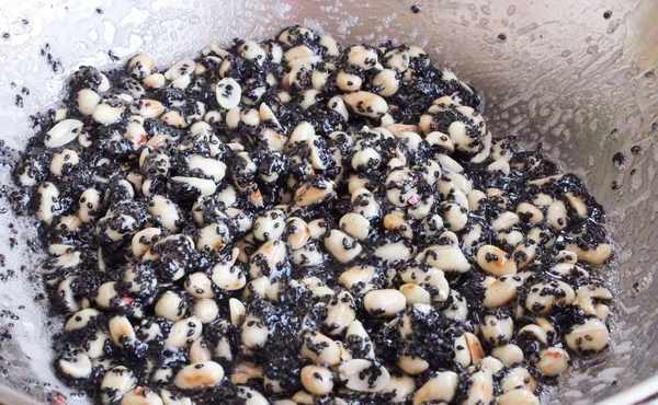 4、先把黑芝麻洗一下,然后把黑芝麻沥干,炒香。
