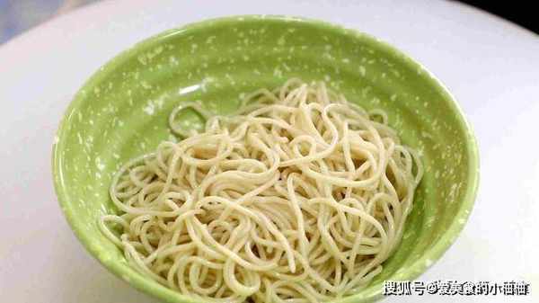 8.锅内再烧水大火把水烧开,下入面条煮至面条全部飘起来,颜色变黄表面微微透亮时,把火关掉,把面条捞出过一下凉水口感更筋道滑溜。