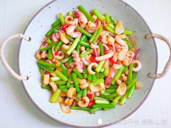 做法:1、鱿鱼打花刀再切成小方块,蒜苗切成小段,2、蒜苗入开水锅焯水1分钟,即可捞出。3、热锅热油,倒入鱿鱼、辣椒、生姜丝、生抽,大火爆炒3分钟。4、放入蒜薹、盐、鸡精、胡椒粉,大火爆炒2分钟即可关火。