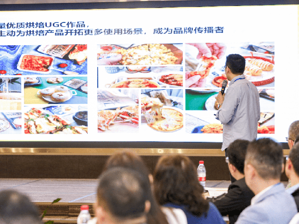 豆果美食CEO王宇翔先生在会上针对烘焙的类型、价值、倾向、口感、厨具和预制烘焙品等方面进行了内容分析。