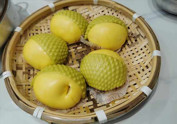 小倩的儿子最喜欢包子了,所以这道菜是给小朋友吃的。虽然不是湘菜,但是老人小孩都很喜欢。榴莲包的造型很可爱,吃起来像奶油包,香甜软软的,还带着淡淡的榴莲香。