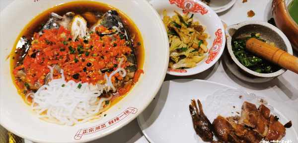 既然是湘菜,就一定少不了剁椒麻辣鱼头。小倩说,一开始觉得会很咸,但上桌尝了尝,才发现是自己想多了。这道剁椒鱼头,鲜咸度恰到好处,应该是提前处理过的,吃起来才不会过头。与鱼头一起炖,香气扑鼻,咸辣度恰到好处,开胃爽口。鱼吃完再泡粉,味道十足,过瘾有余。