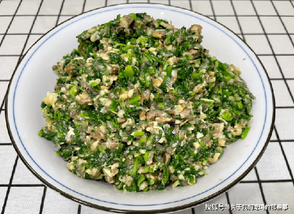 1、荠菜洗干净,前夹肉剁成肉馅,香菇提前用水泡发,冬笋去壳洗净。锅内烧开水,放一勺盐盐,倒入荠菜焯水1分钟,变色后捞出过凉水,挤干水分后剁成碎末。