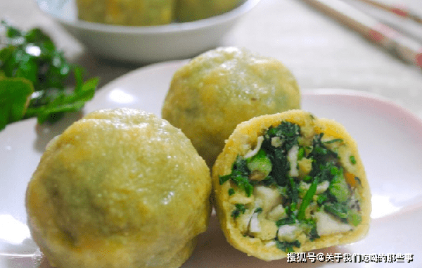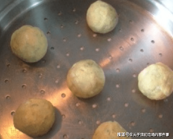 4、把菜团子沾点水,放进玉米面里滚一滚,裹上一层玉米面,反复沾水滚三次,放入烧开的蒸锅里,大火蒸6分钟,荠菜团子就做好了。
