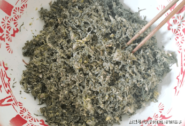 3、荠菜蒸熟后取出,趁热用筷子抖散,晾凉后倒入蒜泥汁,搅拌均匀后即可食用,清新爽口,特别美味。