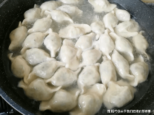 3、准备好饺子皮,荠菜馅腌制入味后开始包饺子,饺子皮中间放入一勺馅料,对折后用手一捏,饺子就成型了。包好后开水下锅,加入一勺盐,煮3分钟,全部漂起来后捞出食用。