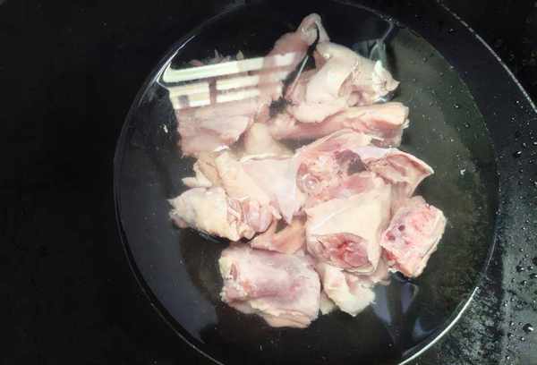 1.将准备好的鸡肉用清水冲洗干净。鸡要多洗几次,洗好后用水浸泡;