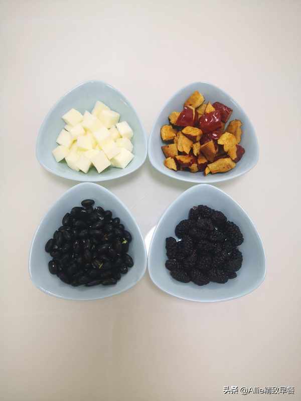 山药,红枣,黑豆,蓝莓,黑芝麻粉,黑芝麻粉,忘记放盘子了,拍照。