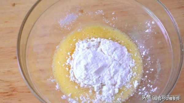 鸡蛋1只加白糖搅散,蛋液与白糖混合均匀以后,加低筋面粉进去,搅拌到搅不开。