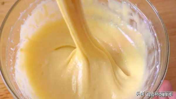 最后添加泡打粉混合在一起,蛋糕糊就准备完成了。