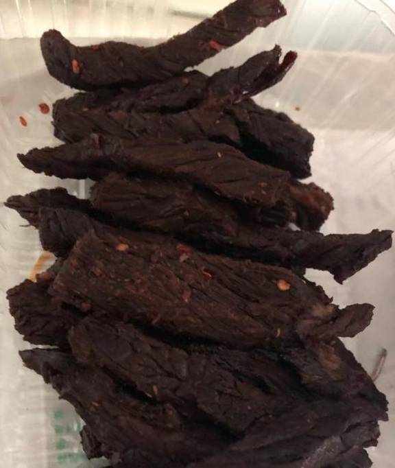 8、最后将沥干汁的牛肉条用烤箱烤干(180度15-20分钟即可),或放在自然环境下晒制风干;