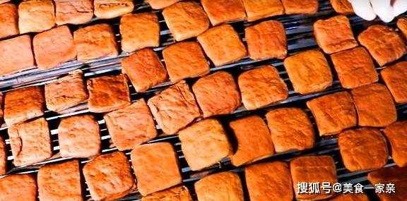 在女友带领下,我有幸参观了她家的后院,院落里的一块木板上放着一块块用纱布包好的豆腐,待到豆腐稍微晾干后,取下纱布,放在边上特制的炉灶上,将其熏至表面微微泛黄,另一边则摆满了已经熏好的豆腐干,整个院子里就会弥漫着一股诱人的香味,而熏好的豆腐干则要用大妈的秘制卤汁至少再煮四个小时以上,才算完成,而经过这么多工序做出的卤豆干却只需要五毛钱一片,可谓是十分实惠,因此每天一出摊,店门口就围满了食客,据一位经常光顾的吃货介绍,大姐做的豆腐干货真价实,去迟了就买不到!