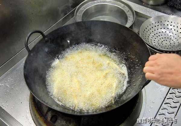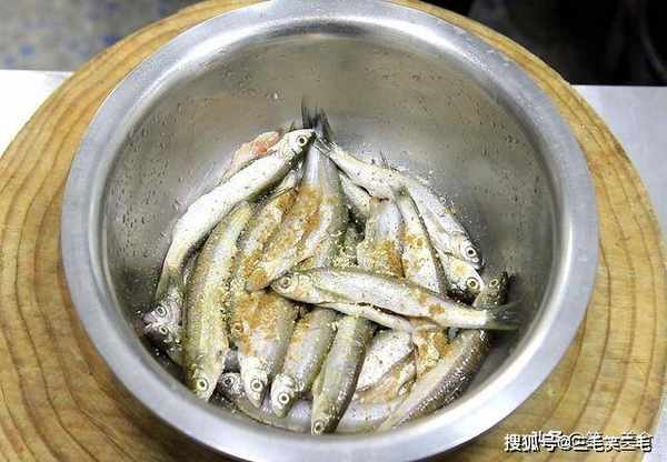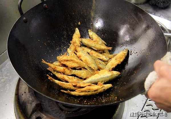 炸这种小鱼、油温低的话容易大量吸油,口感发腻,油温太高的话,又会出现表面焦糊,里面还不熟的现象,五成热刚好。