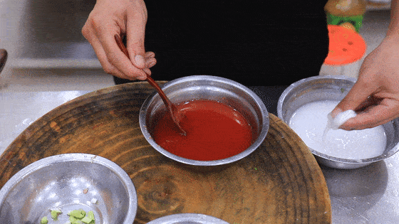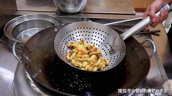 锅内烧油,油温烧至6成热时,把茄子依次放入锅中。保持小火慢炸,并把粘连在一起的用筷子打散。等茄子炸酥,炸成金黄色时倒出来控油。