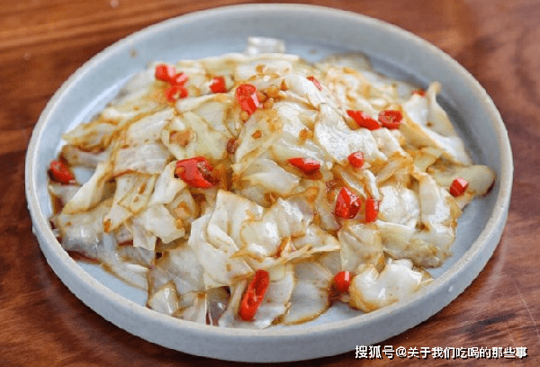 准备包菜、蒜瓣、红辣椒、食盐、生抽、香醋、食用油。