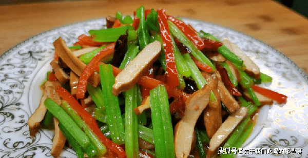 1、芹菜洗干净,切成长段,香干洗净切条。起锅烧水,加入一勺盐、一勺油,烧开后倒入芹菜段煮1分钟,捞出过凉水,沥干水分。再放入香干煮1分钟,捞出沥干水分。