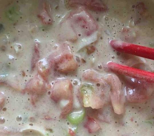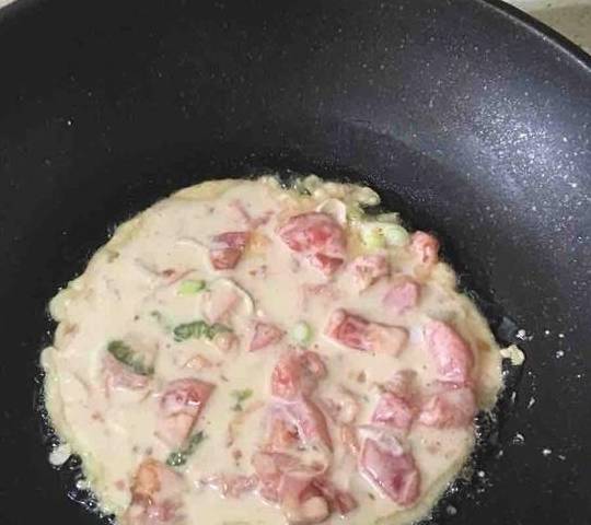 6.西红柿、葱花倒入,一起搅拌