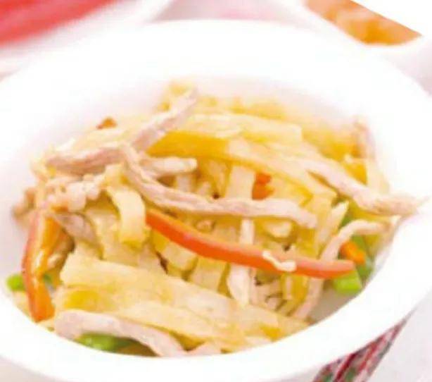【原料】中筋面粉200克,猪肉50克,胡萝卜30克,青椒25克,菜籽、水菇、泡椒各适量。酱油1汤匙,醋2茶匙,精盐2克,味精1克,白糖1汤匙,淀粉2茶匙,鸡汤75克,植物油50克。