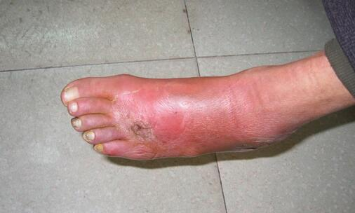 首先懷疑是痛風,第一跖趾關節最為常見,表現為局部疼痛,嚴重可致局部潰瘍且不易癒合。另外還可能是拇趾外翻,隨著外翻程度加深,可引發拇囊炎,大拇趾內側出現紅腫疼痛等不適。