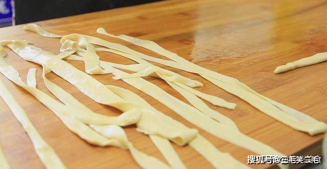 面饼切成大小宽窄一样的条