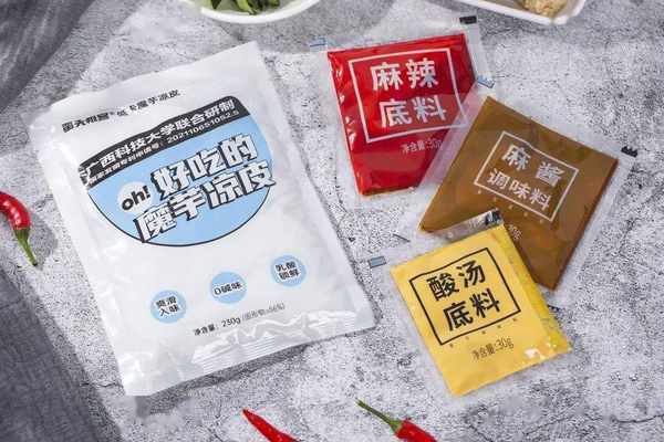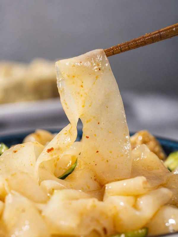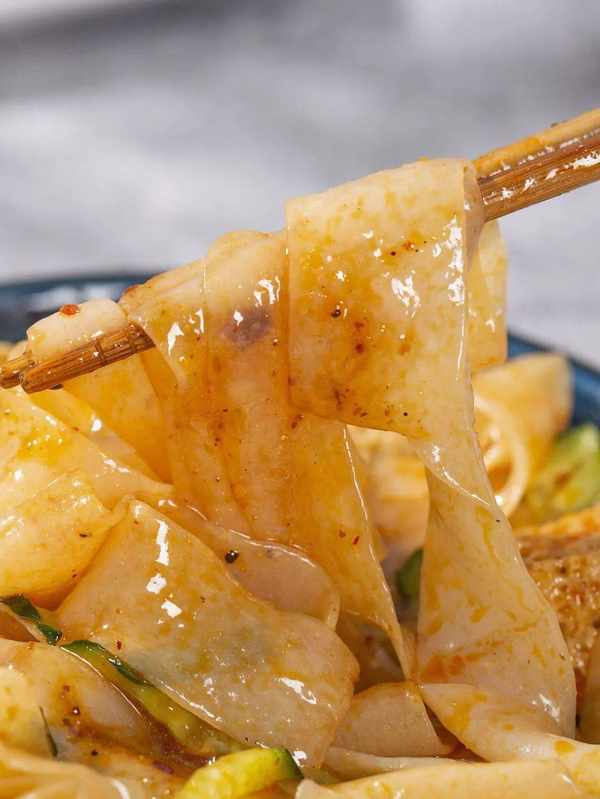 剔透晶莹,毛肚般的柔韧口感,是面皮米皮都比不了的。开袋倒入调料就能吃,比泡面还方便。