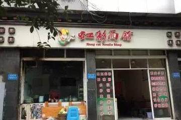 虹彩面馆店面位于武隆芙蓉中路76号,人气不错,招牌醒目。