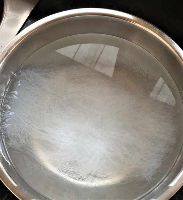 3. 泡软的粉丝控干水分,也加入到盆中。