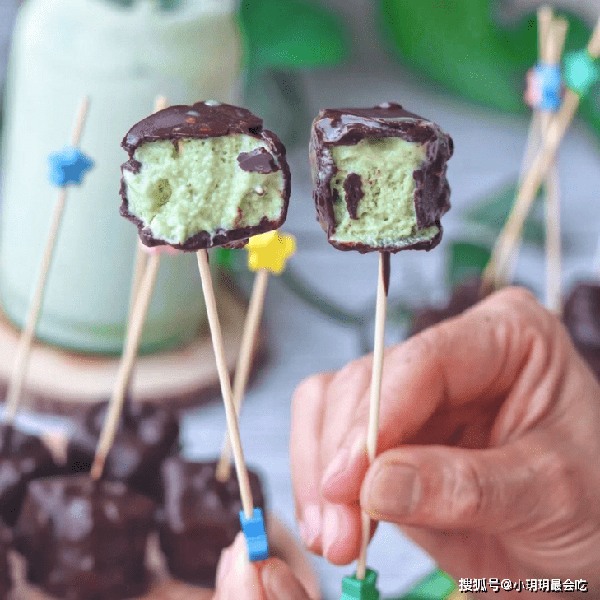 又脆又凉又甜的抹茶冰淇淋小方就完成啦,脆脆的外皮,再加上黑巧克力的微苦,让整个冰淇凌的口感更丰富细腻,有了这个,整个夏天都变可爱啦~