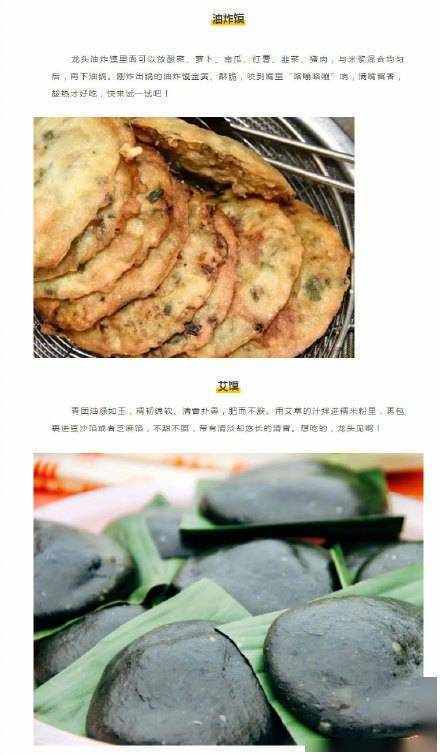 2月21日,农历二月初二,广西河池市宜州区龙头乡将举办第三届“龙头节”民俗文化活动,主要内容有开幕颁奖仪式、龙狮队游行、文艺汇演、春耕礼、龙狮大赛、美食展及春社宴等项目。龙头乡位于宜州西部,属宜州、都安、金城江三县区交界地带,美食众多,不仅糅合了三县区部分美食,还形成了自己独特的风味。那么,今年的美食有哪些?一道道独具特色的民俗风味美食,清淡、鲜美、酥脆、香辣、酸甜……品种繁多,色味芬芳、无比诱人!这将是一场传统美食愉快之旅。️