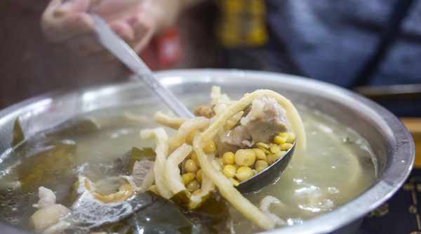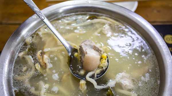 不过当地的猪肉好吃,蹄子肯定不差。至于黄豆、豆芽、紫菜,都是提味增味、丰富一锅汤的元素。从商业角度来说,成本是可以合理控制的。