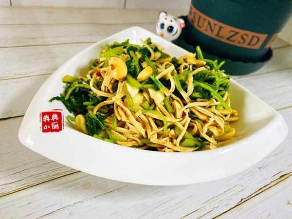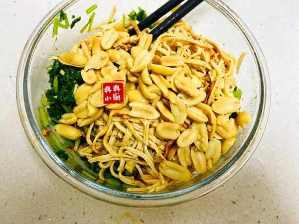 最后加入一点花生米,凉拌菜里面加上一点花生米很香,但一定要加脆脆的那种花生米才好吃。