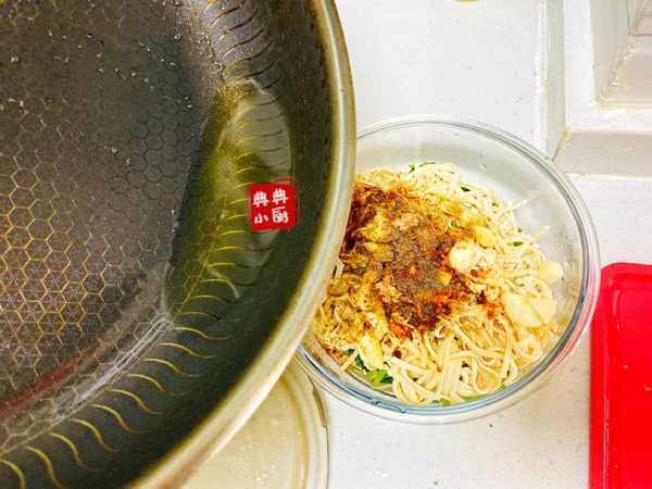 把烧好的热油淋上去,盖上盖子静置一会儿。