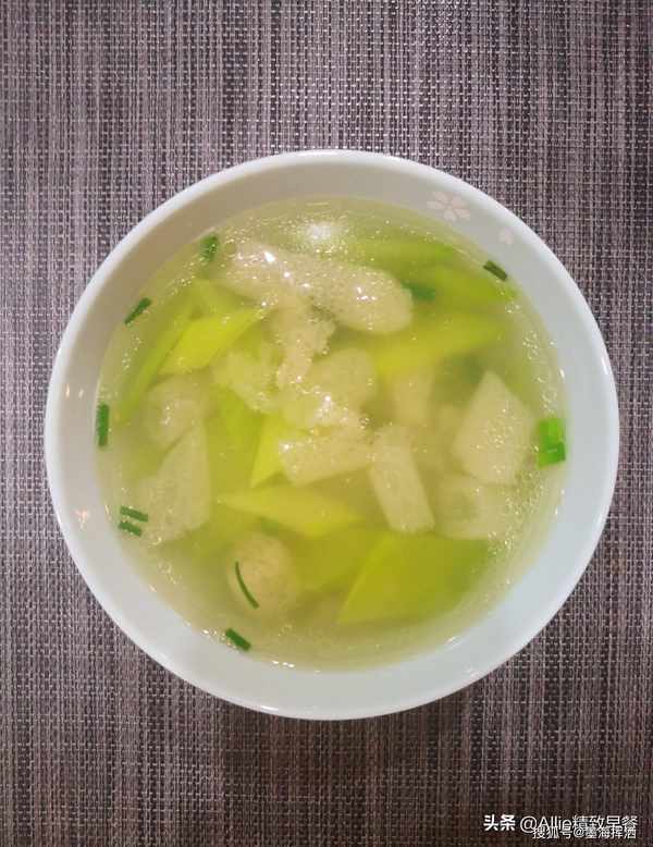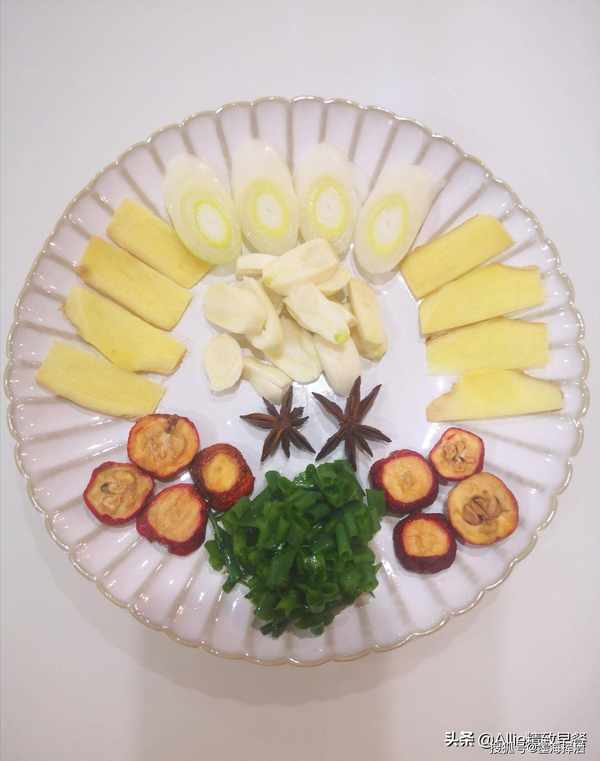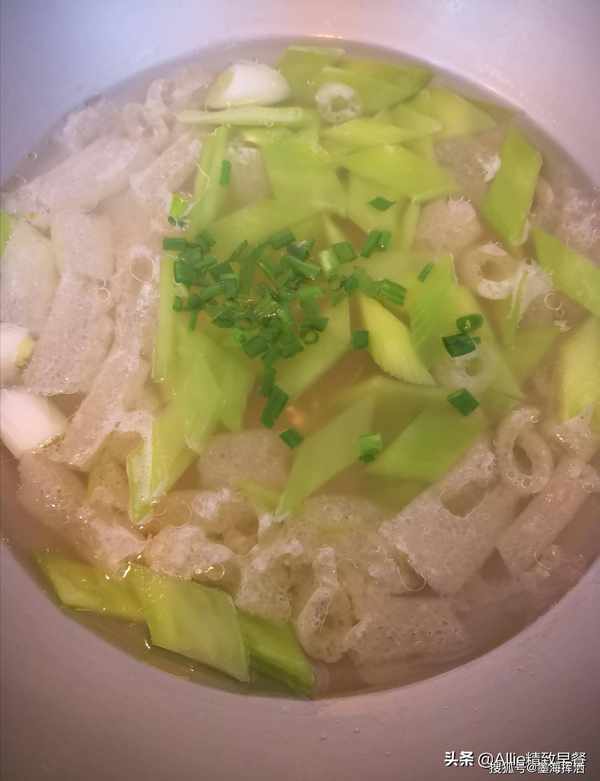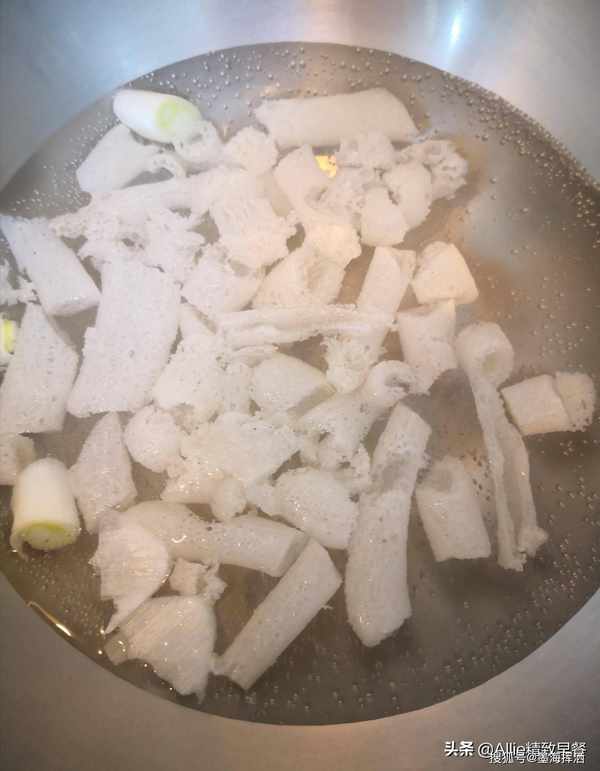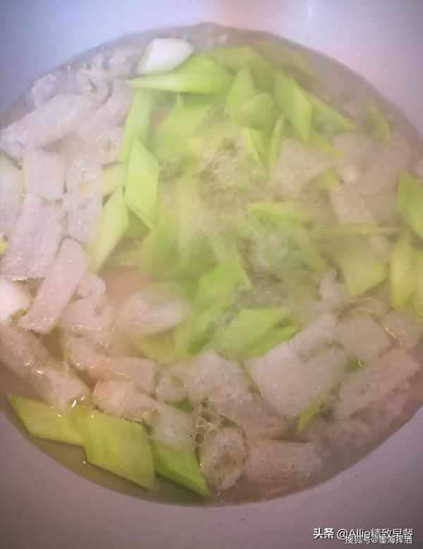 生菜、竹荪、洋葱。调料:盐、脂肪。【实践】水开后,倒入冬菇和葱段,用大火煮沸,然后转中小火继续煮3分钟。