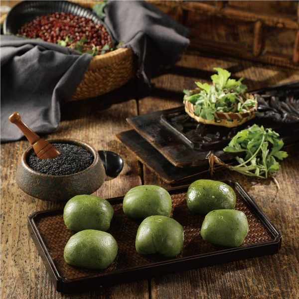 艾草豆沙、艾草莲蓉、艾草奶黄、艾草芝麻……艾草系列青团是上海人熟悉的南市乔家栅旗下年轻品牌“乔老爷”的主打产品,与眼下主流的以麦青汁制作青团皮所不同的是,他们采用的是艾草制成的青汁。