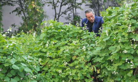 扁豆是种耐干旱少病虫害的植物,易于种植而且结荚多,在老家人们都是把扁豆种在院墙外边,在旁边埋上几根树枝,到了初夏时扁豆的茎蔓就会顺着墙长成一片,远远望去如同一道绿色的瀑布墙。扁豆最大特点就是高产,花序多的数不过来一根枝条上有好几十个,种2棵扁豆可以爬满整个院墙。