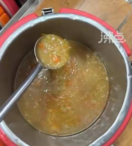 对此,宋同学表示是学校选的配餐公司,一份10块钱,2月18日下午4点45分吃的饭。“每个班4个桶,3个桶是菜,1个桶是饭。炒土豆丝、西红柿炒鸡蛋还有肉沫整了一堆汤”。