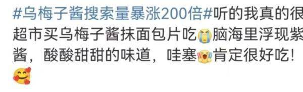 “乌梅子酱”本是一种由乌梅制作成的果酱,制作的时候还会搭配上山楂、陈皮、洛神花、白砂糖,味道酸酸甜甜又带着一点着微涩,风味独特,被网友评价为初恋的味道。