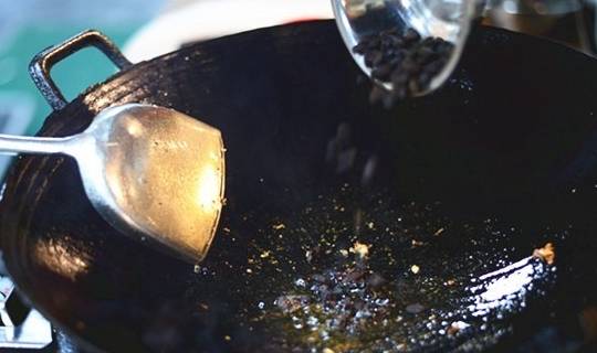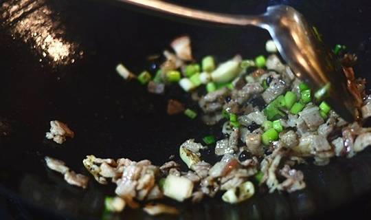 2.放油,将豆豉、蒜米、大蒜白爆炒。