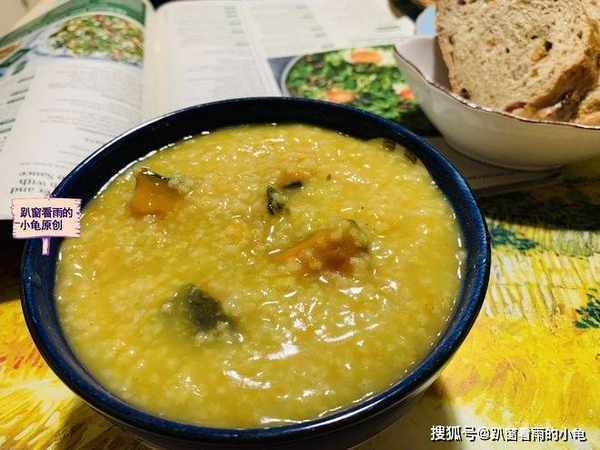 3:将南瓜块倒入电饭煲中,再加入8倍小米的清水,按下“煮粥”键即可。