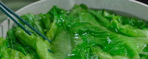 锅中加入适量的水,开大火烧开。水开后,加入一茶匙食盐和几滴食用油,用勺子搅拌均匀,然后加入沙拉焯15秒左右。