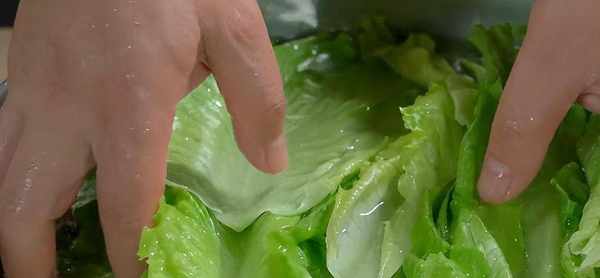 生菜泡好后,一粒一粒洗净,然后用流水冲洗两遍,至水清澈为止,捞出控水备用。