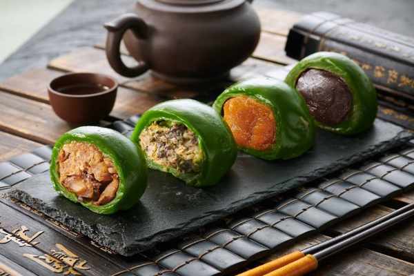 上海德兴馆今年有四种口味青团,其中黑松露菜肉青团、鲍鱼陈皮猪肉青团为中华路店特供品种。