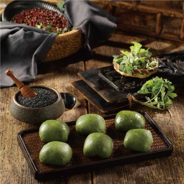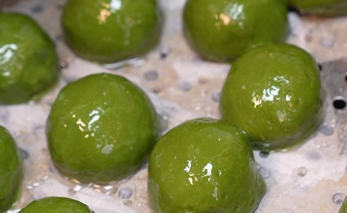 清明前后,艾草相对鲜嫩,艾草青团的传统做法是择去老根老茎后,留下其幼嫩部位,再以传统工艺将艾草青汁与糯米粉等搅拌均匀制成青团皮,如此一来,蒸熟后的青团更能保留艾草的独特清香。南市乔家栅旗下年轻品牌“乔老爷”的主打产品便是艾草系列青团。相比这种偏古法的艾草口味青团,颜色鲜绿油亮、带有淡淡草本味的麦青汁制成的青团也很受市民顾客们的欢迎。