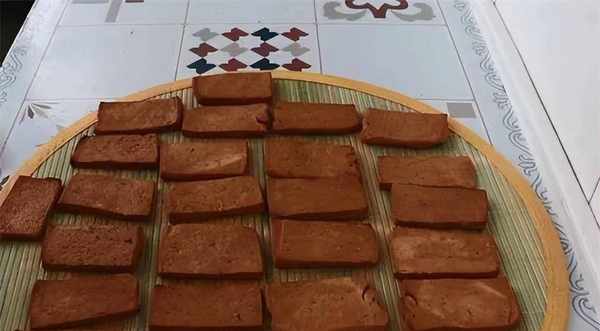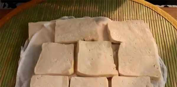 5、完成后取出豆腐,铺在透气的工具上沥干水分。