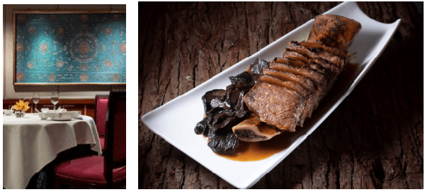 香港喜来登酒店天宝阁连续五年揽获一钻殊荣,餐厅传承粤菜传统及精髓,以时令食材入馔,是品尝地道菜式和体验中国传统用餐文化的好去处。以和暖的木质色调装潢配以天然丝绸装饰,充分体现出浓郁的东方文化色彩。中餐行政总厨陈伟杰善于借鉴结合传统粤菜经验,烹饪以海味为主题的精品菜肴,以低盐﹑低油﹑低糖为主、尽取食材的天然鲜味。特色菜黑虎掌菌五味牛肋骨,甄选来自云南的黑虎掌菌,质地扎实具浓郁菌香,与丰腴牛脂配搭,将牛肋骨与黑虎掌菌同炆,待牛肋骨炆煮至淋滑后,再将外层煎至香脆,令其口感外脆内软。